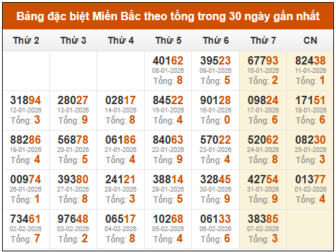 ⚡ Thống kê GĐB xổ số miền Bắc theo tổng: 08/02/2025