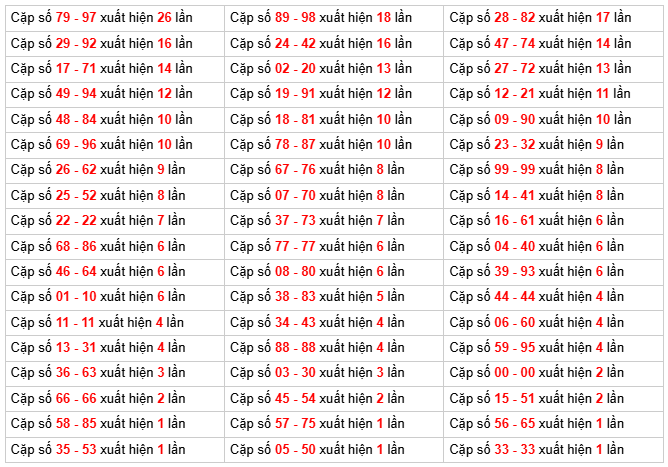 Tổng số cầu xuất hiện theo cặp (sắp xếp giảm dần)