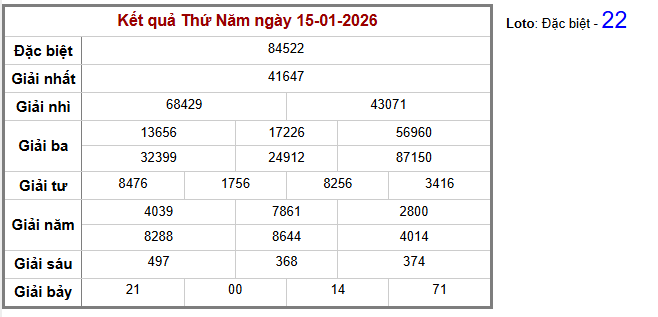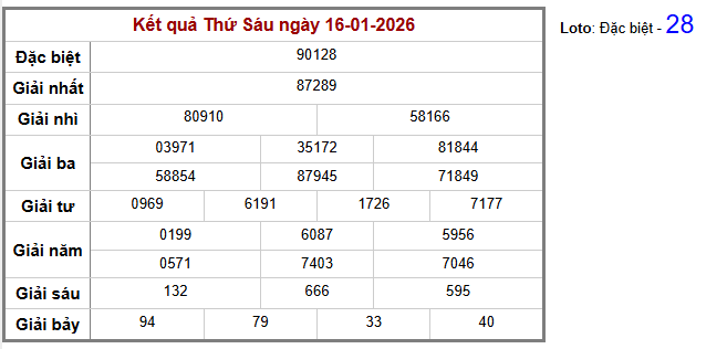 Chi tiết cầu Giải đặc biệt Truyền Thống biên độ: 2 ngày tính từ ngày 17-01-2026. Cặp số: – xuất hiện: lần