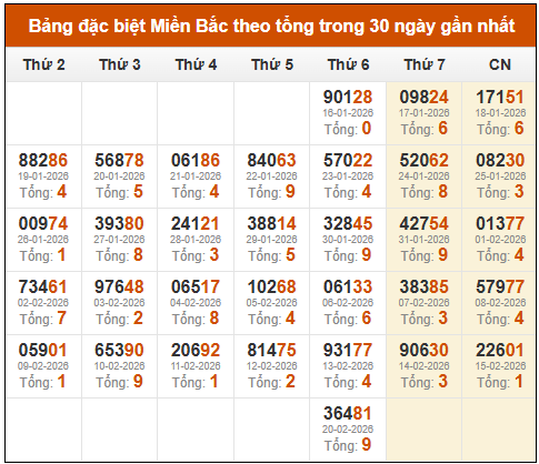 Thống kê Soi cầu đặc biệt Miền Bắc theo tuần