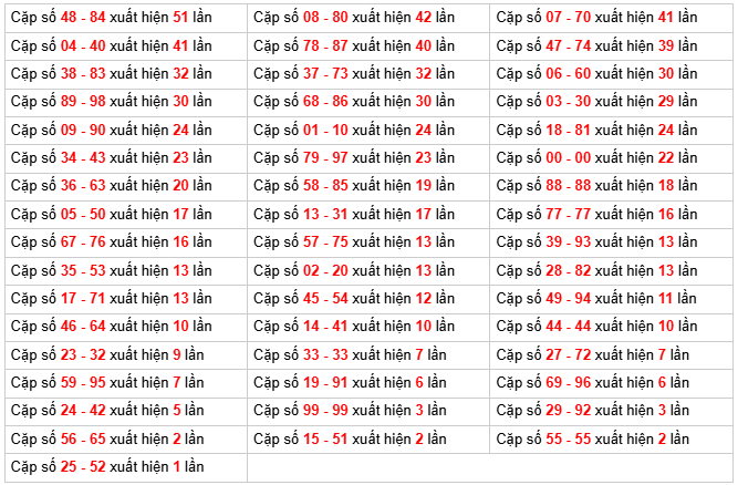 Tổng số cầu xuất hiện theo cặp (sắp xếp giảm dần)