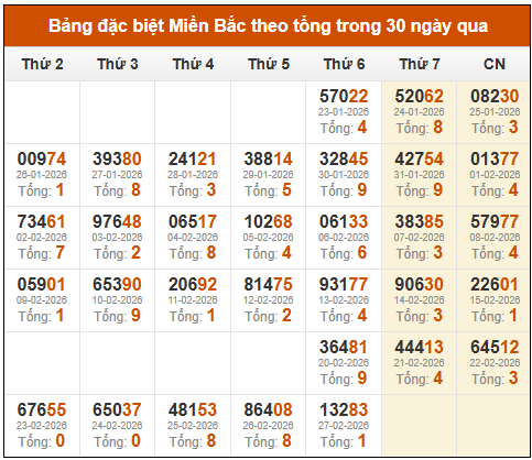 Thống kê Soi cầu đặc biệt Miền Bắc theo tuần