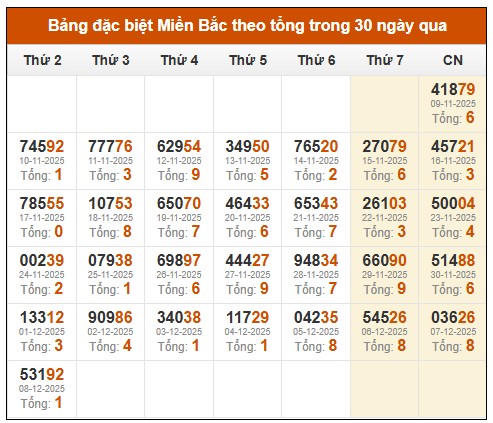 ⚡ Thống kê GĐB xổ số miền Bắc theo tổng: 10/12/2025