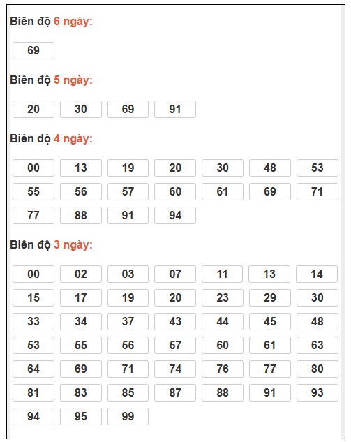 - Kết quả có loto: 69 ⇒ Thống kê bộ số về nhiều: 36