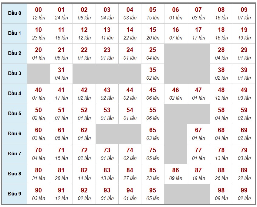 Bảng Thống kê phân tích loto gan Truyền Thống Miền Bắc