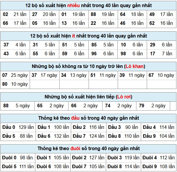 ⚡ Loto về ít nhất: : 10, 17, 37, 40, 85