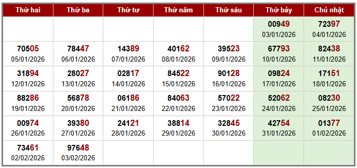 Thống kê dưới đây tính đến trước giờ kết quả ngày: 04-02-2026