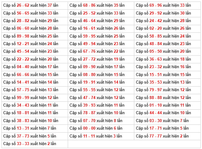 Thống kê tần suất loto ngày 04/02/2026: