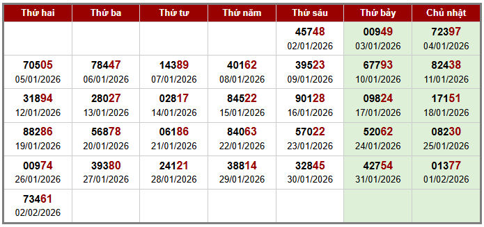Chi tiết cầu Giải đặc biệt Truyền Thống biên độ: 2 ngày tính từ ngày 02-01-2026. Cặp số: – xuất hiện: lần