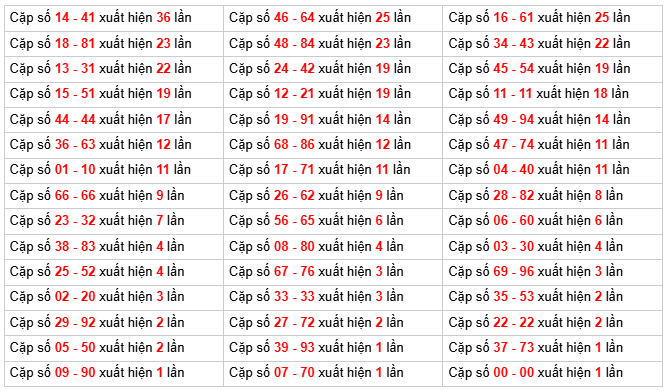 Tổng số cầu xuất hiện theo cặp (sắp xếp giảm dần)