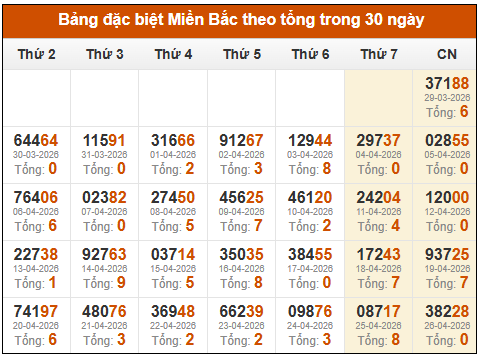 ⚡ Thống kê GĐB xổ số miền Bắc theo tổng: 28/04/2025