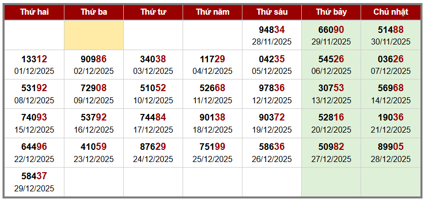 Thống kê dưới đây tính đến trước giờ kết quả ngày: 30-12-2025