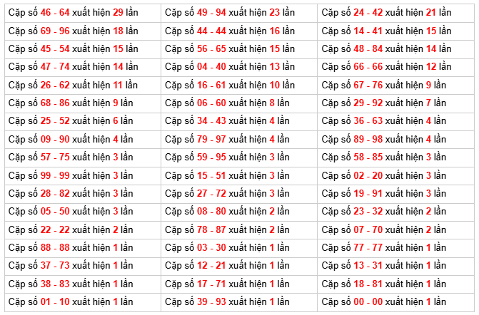 Thống kê tần suất loto ngày:04/04/2026: