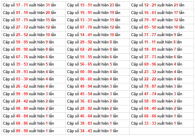 ⚡ Hai số cuối giải ĐB về nhiều trong 30 ngày gần đây: 88, 91, 93, 94, 95
