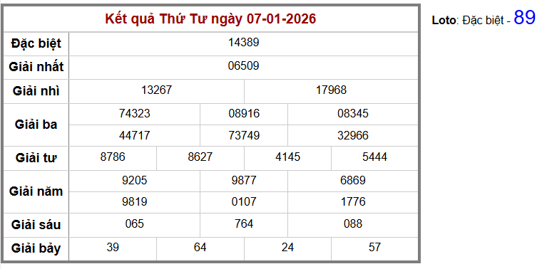 ⚡ Hai số cuối giải đặc biệt 89 Tổng 7