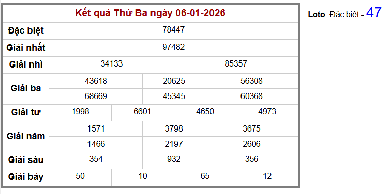Dựa vào bảng kết quả xổ số Miền Bắc ngày 07/01/2026.MIG8 mời bạn tham khảo thống kê phân tích kết quả như sau: