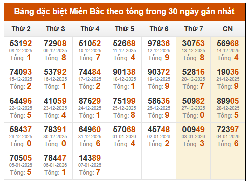 Thống kê Soi cầu đặc biệt Miền Bắc theo tuần