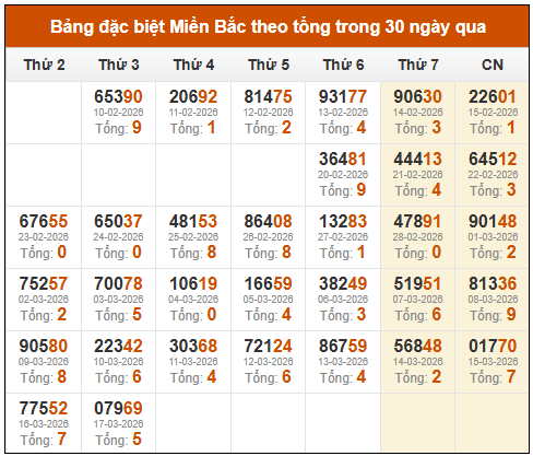 Thống kê Soi cầu đặc biệt Miền Bắc theo tuần