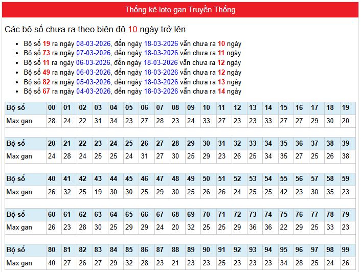 Thống kê dưới đây tính đến trước giờ kết quả ngày: 19-03-2026