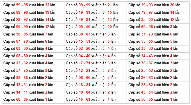 • Kỳ trước có loto: 20 ⇒ Thống kê loto hay về: 15