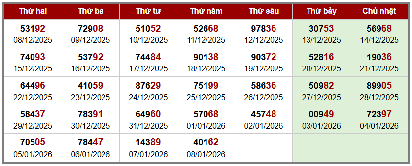 Thống kê Soi cầu đặc biệt Miền Bắc theo tuần
