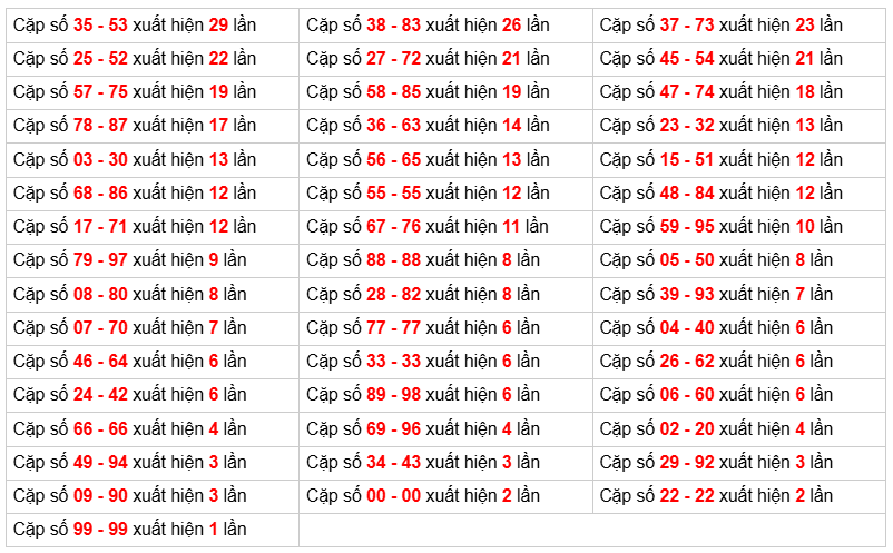Tổng số cầu xuất hiện theo cặp (sắp xếp giảm dần)