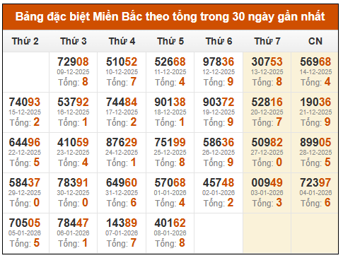 Thống kê Soi cầu đặc biệt Miền Bắc theo tuần