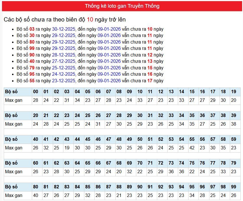 Thống kê dưới đây tính đến trước giờ kết quả ngày: 10-01-2026