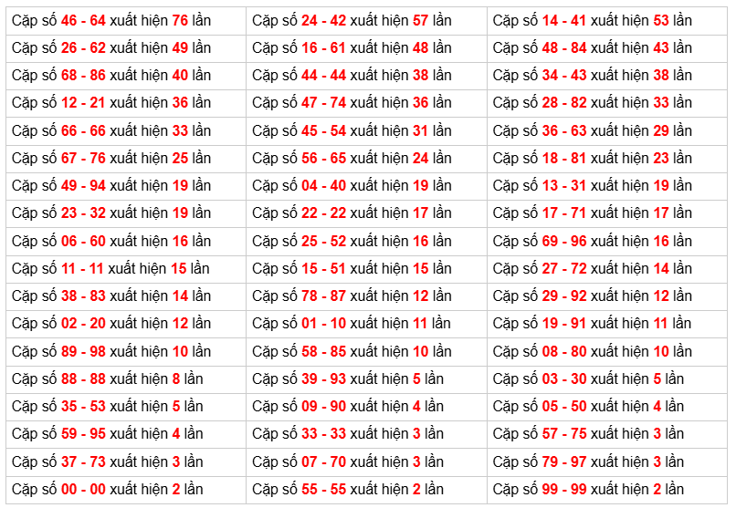 - Bảng kết quả có 88 ⇒ Thống kê loto về nhiều: 46