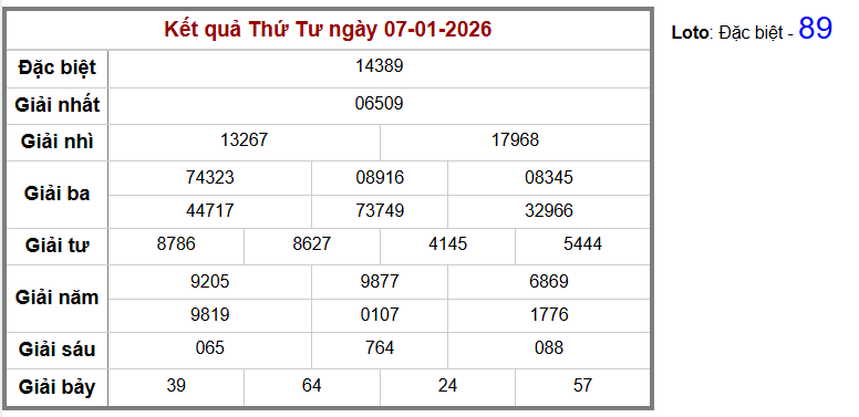 - Bảng kết quả có 38 ⇒ Thống kê loto về nhiều: 89