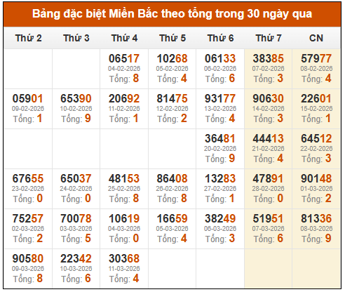 Thống kê Soi cầu đặc biệt Miền Bắc theo tuần