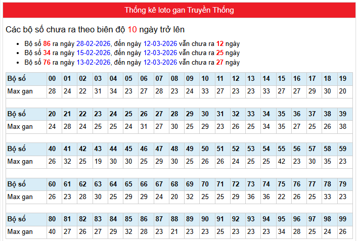 Thống kê dưới đây tính đến trước giờ kết quả ngày: 13-03-2026