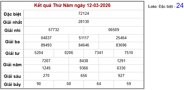 ⚡ Hai số cuối giải đặc biệt: 24Tổng 4