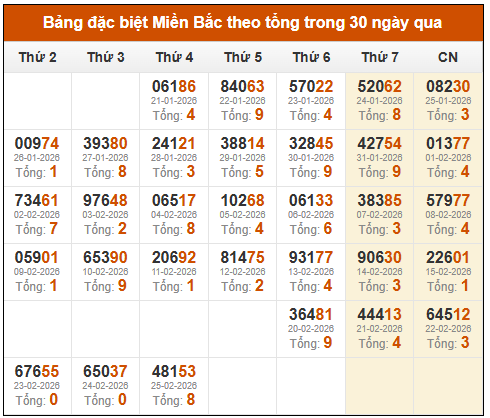 ⚡ Thống kê GĐB xổ số miền Bắc theo tổng: 27/02/2025