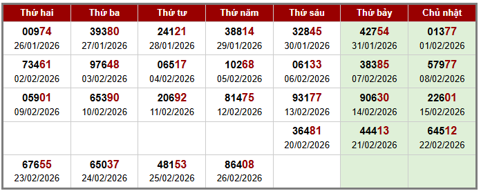 Chi tiết cầu Giải đặc biệt Truyền Thống biên độ: 2 ngày tính từ ngày 26-02-2026. Cặp số: – xuất hiện: lần
