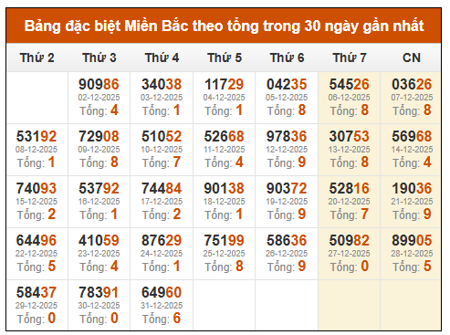 Thống kê Soi cầu đặc biệt Miền Bắc theo tuần