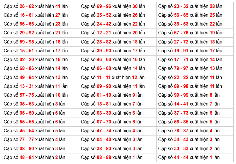 - Kết quả có loto: 01 ⇒ Thống kê bộ số về nhiều: 26