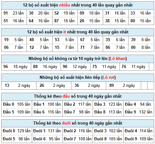 ⚡ Loto về nhiều nhất: 91, 30, 52, 09, 20
