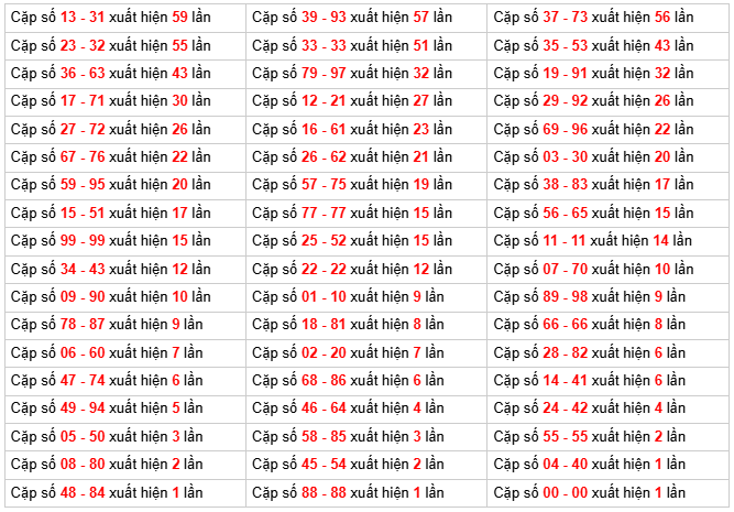 • Kết quả có loto: 00 ⇒ Thống kê bộ số về nhiều: 83