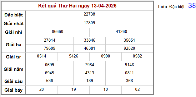 • Kết quả có loto: 38 ⇒ Thống kê bộ số về nhiều: 69
