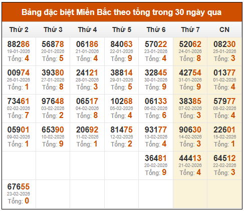 Thống kê Soi cầu đặc biệt Miền Bắc theo tuần