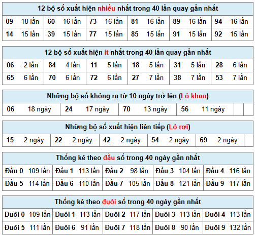 - Kết quả có loto: 92 ⇒ Thống kê bộ số về nhiều: 78