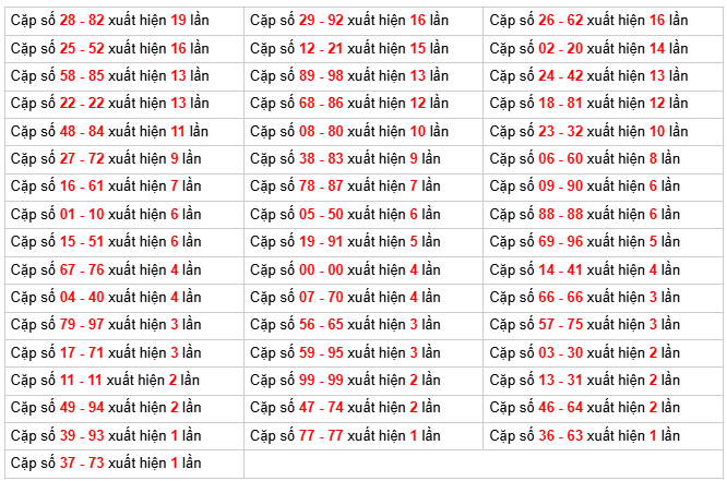 - Kết quả có loto: 00 ⇒ Thống kê bộ số về nhiều: 82