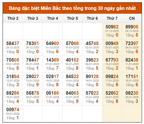 ⚡ Thống kê GĐB xổ số miền Bắc theo tổng: 28/01/2025