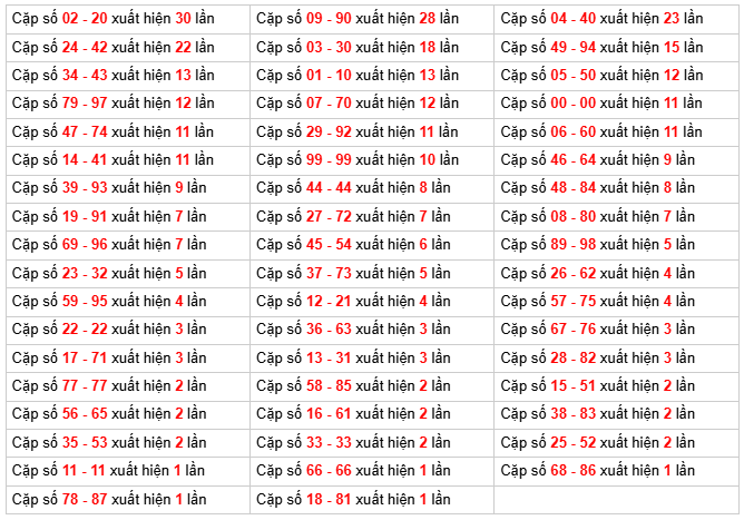 - Kết quả có loto: 20 ⇒ Thống kê bộ số về nhiều: 56