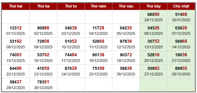 Thống kê dưới đây tính đến trước giờ kết quả ngày: 31-12-2025