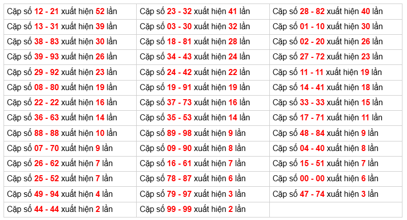 - Kết quả có loto: 42 ⇒ Thống kê bộ số về nhiều: 52