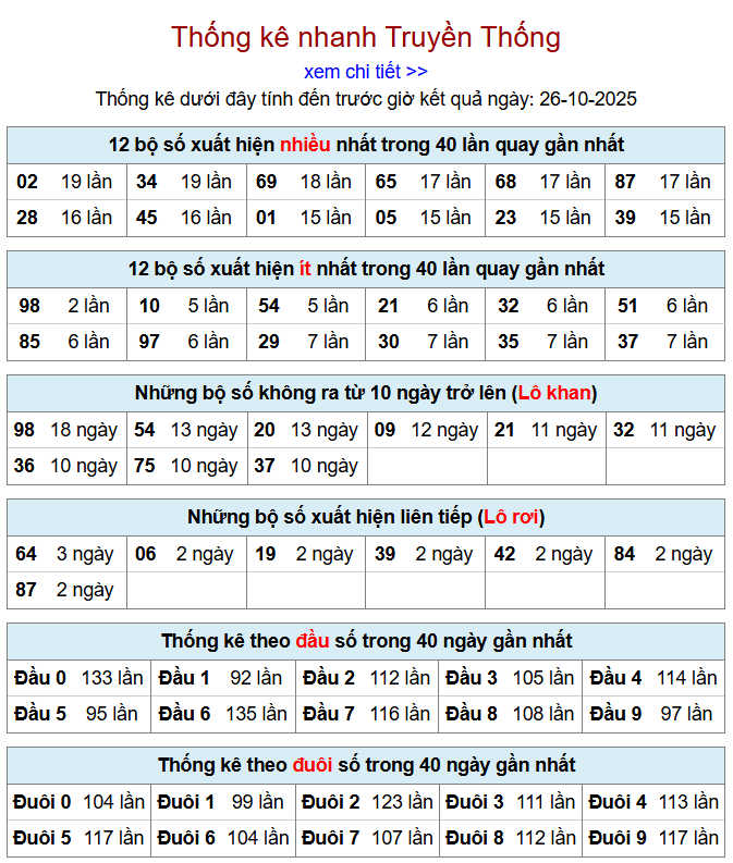 Thống kê lô tô trực tiếp và đầu đuôi lô tô của XSMB