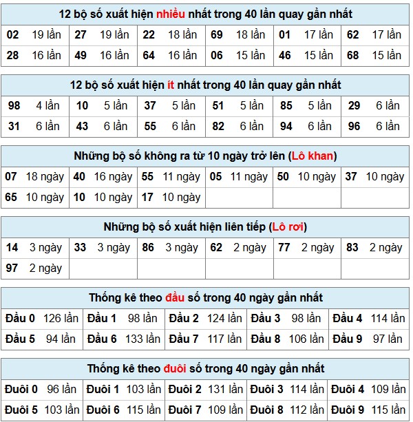 Thống kê lô tô trực tiếp và đầu đuôi lô tô của XSMB