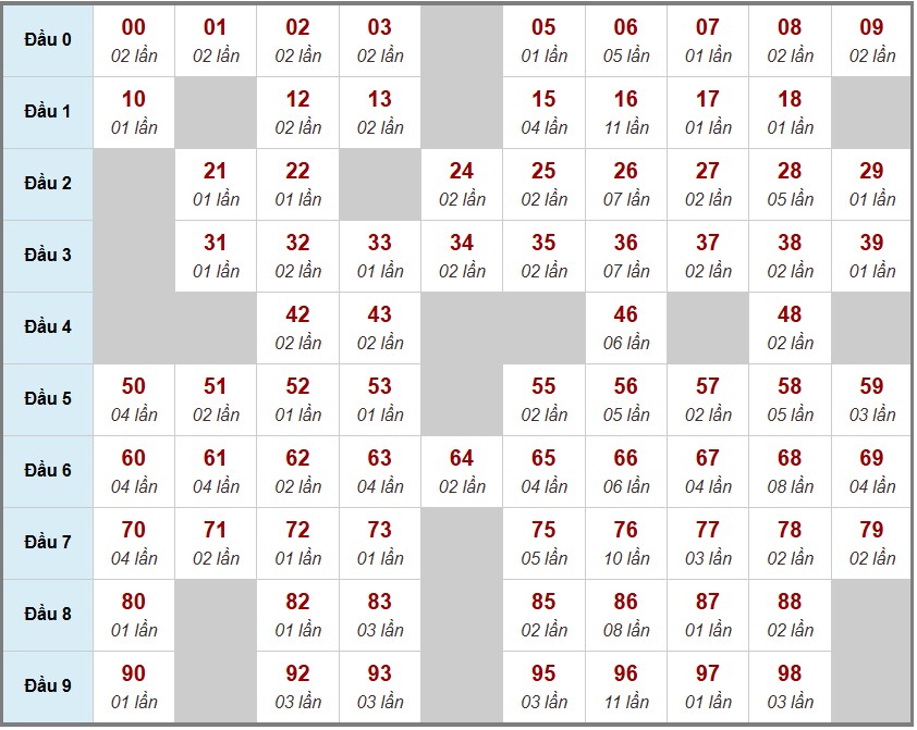 Chi tiết cầu Đặc biệt theo thứ Truyền Thống biên độ: 3 ngày tính từ ngày 09-11-2025. Cặp số: – xuất hiện: lần